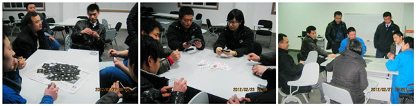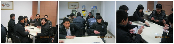 2月23日下午6:00,伴随着一声“开始”,第一轮扑克牌联谊赛拉开了帷幕,纵观赛场,赛手们有的表情凝重,有的毫不在意;有的小心翼翼,有的大胆甩牌;有的紧张的坐直了身子,有的淡定地身子后仰;真可谓是“千姿百态,妙趣横生”!