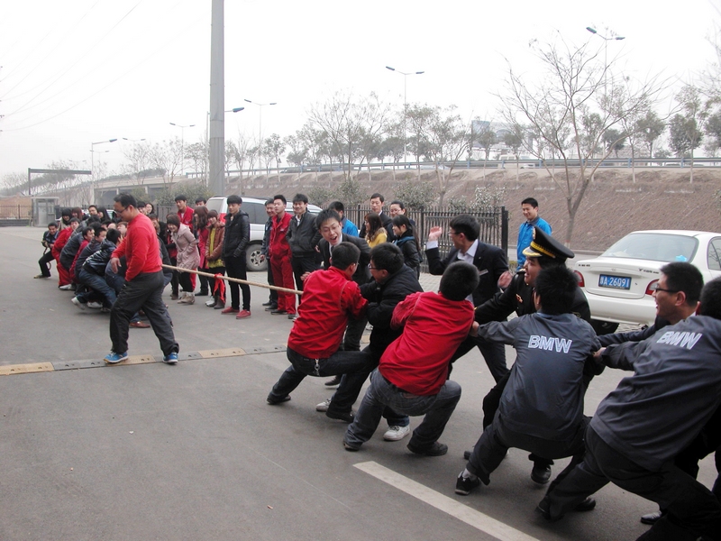 本次系列活动的启动项目拔河比赛,由白永伟总经理亲自担任裁判,公司各部门员工分为四队参赛,各队队员还为自己的队伍起了名字,分别是“开拓队”“超越队”“势不可挡队”“中鑫队”。