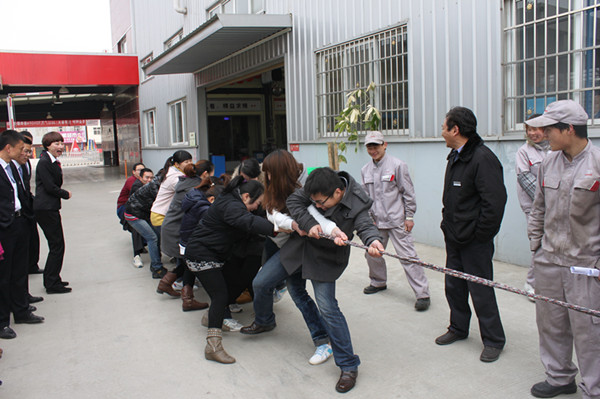 一声响亮的“开始”口号,拔河比赛拉开了此次活动的帷幕,双方队员卯足了劲奋力向自己这边拉。旁边的啦啦队欢呼“加油,别松,再使把劲……”整个现场气氛高涨,一时间难分胜负。