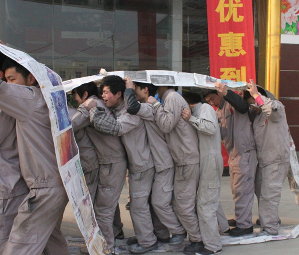 2012年3月13日,在第一天的开幕式以及拔河之后,信阳广丰店团队PK活动进入到第二个项目:无敌风火轮。这既不是《破坏之王》中周星驰的必杀技,也不是哪吒三太子的神器,规则宣布之前大家都很好奇,这到底是一个什么样的比赛呢?