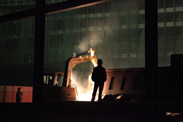 4月26日凌晨,北京店的施工现场依然有灯光,一个熟悉的身影在来来回回的忙碌着。由于白天运垃圾的大车禁止进市,只有晚上才可以进入到施工现场。季全坡就成了“守夜人”,在工地上和工人们一起搬运白天施工中的垃圾,中途拉运车又出了故障,直到凌晨两三点才回去休息。
