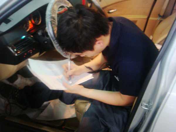 李哲班组在诊断玻璃升降故障