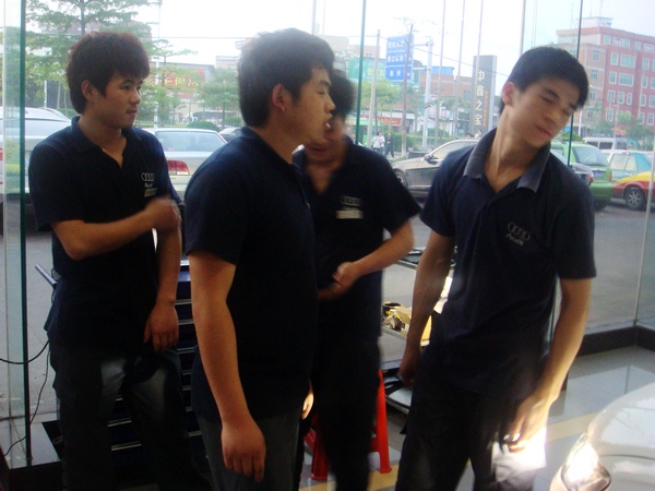 参加比赛的共七组成员,分别为宝马车间参赛选手时志涛班组、李哲班组、王翰章班组;奔驰车间刘国龙班组、钟澄峰班组、奥迪车间丁亚班组、沈标金班组。