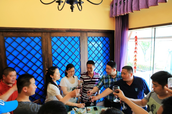 爬过山后,车友们终于可以坐下来吃点独特的“乡间小餐”。品尝着波尔多红酒,谷经理轮桌敬酒,表示感谢和支持。车友们也都竞相予以回应,一篇和谐之景。