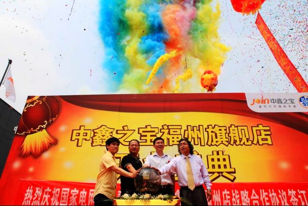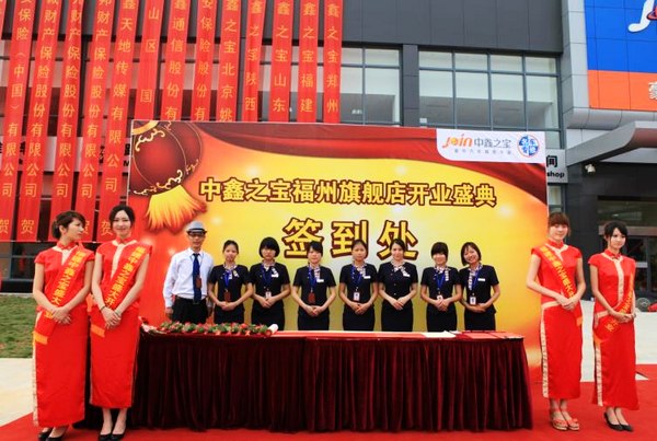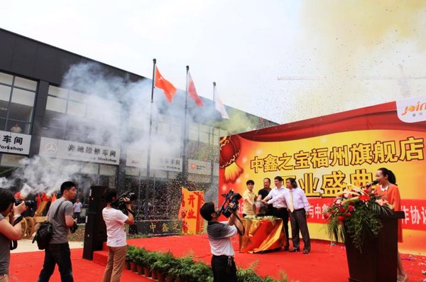 2012年5月25日上午,中鑫之宝福州店内外张灯结彩,热闹非凡,洋溢着一派喜庆的气氛。中鑫之宝福州店开业庆典于10时18分隆重举行,仓山区副区长宋仟根、工商局局长潘健、环保局局长郑祖勇、市执法局局长柯弃聆、环保局副局长林尧、运管所所长朱光荣、盖山开发区管委会书记侯治华、英大泰和财产保险总经理胡总等相关领导纷纷到场表示热烈祝贺,现场还云集了汽车行业精英、福建省内和福州市当地各大主流媒体,盖山投资区和高旺路上车水马龙,新落成的福州店内人潮涌动,吸引了众多市民前来参观,共同见证中鑫之宝福州店的开业盛世。
