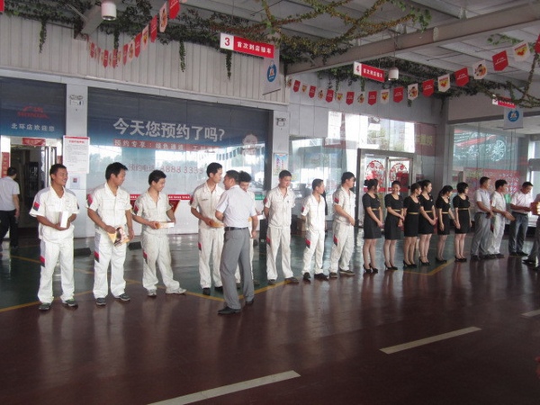 6月11号早上8:00,伴随着洪亮的口号,广本北环店周一大晨会在前台接待区拉开了帷幕,这次晨会的内容主要是对5月份进行总结,并对5月份表现优秀的团体和个人予以表彰。