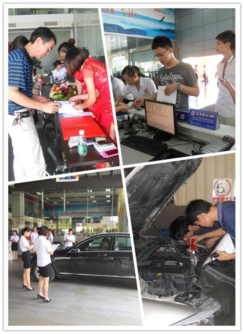 活动期间,到店客户来的时间相对比较均匀,每位到店客户参与抽奖的都由专人引导到签到处签名,然后拿着小卡片到前台参与抽奖,同时对于每个进店的客户,都有礼相送。公司接车区,张总也现场安排工作人员引导车子停好位置、或引进车间保养。大厅内人声鼎沸:上网区、客户休息室,到处都是人的身影,热闹异常。各车间、洗车房都排起了长龙,车间内很热,但师傅们也不畏辛苦,每台车都按照流程操作,所有工作人员都推迟了用餐时间。草坪上彩旗顠顠,门前拱门齐放……整个公司透露着节日的喜庆。