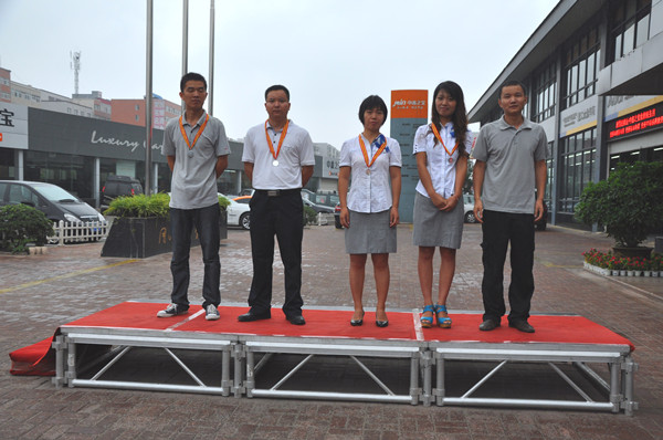 郑州市场部汪兰、郑苍豫北区域张鹏飞、集团客户部李栋梁新车台次冠军:郑州市场部赵丛
