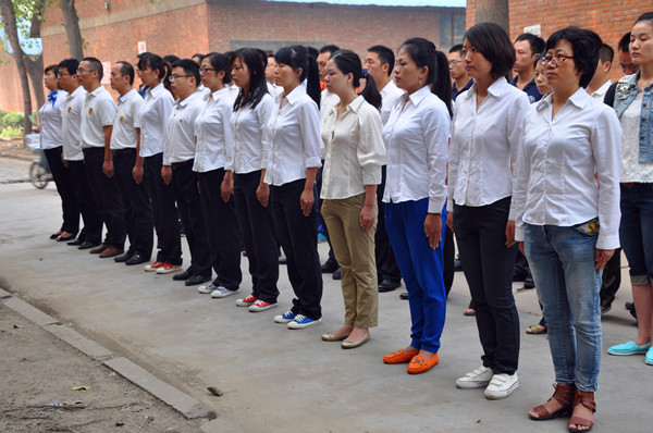在军训中,教官将队伍分成两队,一名教官负责一个小队,武警教官非常严格,军训刚开始,就让所有学员将手机交出,以保证军训质量,一人出现错误,罚所在小队全体人员做俯卧撑,初犯做10个,再犯15个,以此类推。方法虽然简单却很有效,学员们对军训中的每个口令和动作都重视起来。从早上7:50左右到下午5:30,除了吃饭休息时间,学员们整整训练了7个多小时,“一二一”“一二一”大家顶着炎炎烈日,喊着响亮的口号,和着整齐的步伐,还要不时避让经过的车辆。经过一天的训练,大家都很疲惫,但整体面貌大有改观,动作更加标准,整体行动整齐统一。下午5:30左右,两名警官带领自己的队伍进行了PK,对大家所学的内容进行了全面展示,大家激昂的精神面貌、响亮的口号、标准的动作、整齐的队伍本次军训交上了一份满意的答卷。在训练过程中,中博店行政经理周宏健在现场为大家准备好矿泉水、花露水,在做好后勤工作的同时,军人出身的他还协助教练纠正大家的动作,手把手的教大家动作要领,这种无私付出、积极帮助同事的品质值得我们学习。