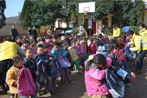 通过与老师的沟通,学生就连最基本的学习用品都买不起,早晨上学赶山路大约得2小时。一个个案例证明山里孩子上学不易。我们以后会尽力为他们伸出援助之手。仪式结束后,全体员工与孩子们做起了“老鹰抓小鸡”和“猫捉老鼠”的游戏,让孩子们感受到了无限快乐与温暖。我们还走进他们的教室参观了一番,只有三四张桌子已经破旧不堪,桌子上放这两三本书,最令人难忘的是一个桌子上放着不到5厘米长的铅笔,不知道孩子们怎样写作业的,但旁边有个作业本写的生字工工整整,可见孩子们的求知欲望还是很强的。