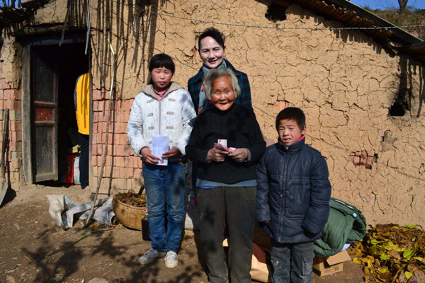 中午,邱华大姐带我们去了就读五年级的学生王倩家中慰问了年过八旬的老奶奶,婆孙三人的吃住就在一间不够15平米大的“茅草”屋。屋子里边没有任何光线,只有微弱的光线透过墙壁的缝隙照射进来,家中无任何经济来源,温饱问题靠老人采草药为生。此次我们公司为她们送去了被子、毛毯、油等生活用品。邱华大姐代表爱心人士为他们送去600元人民币,让老人家感受到有许多好心人关爱着她们,让两个小孩也能对生活充满信心与希望。
