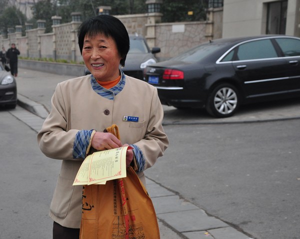 保洁大姐捐物又捐钱