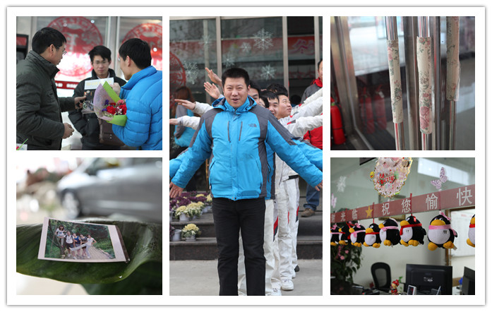 首先是真诚,承诺员工的一定会做到,“比如待遇问题,有的店业绩上去了,有时候就会食言,但我们员工的待遇会随公司的发展而不断提升”。售后经理李富利显然有更深的体会。有这样的前提,公司的发展和每个人息息相关。大家都愿意在这个企业踏踏实实地走下去。其次是爱护,每逢车展,早早到店的王总会买好早餐悄悄放在前台,“还有次在外地做车展,我跟王总说太热了,王总就从郑州扛了两个大冰袋过去了,一般的领导谁会干这活?”王奉敏回忆。当问他什么事情让他最感动?他挠挠头,“说感动吧,每件事情都很感动,但说最感动吧,好像已经习惯了”。这更说明领导不是在做秀,而是将这些事情做的自然而然,采访结束拍团队合影时,低调的王总坚持不入镜,而是乐呵呵地为大家调整队伍,于是,我第一次拍了一张没有领导的全家福,秦总在接受采访时一直夸着自己的员工,将所有的功劳归于员工,唯独不提自己。不是高高在上的领导,更像默默贡献的幕后人员。父母生病,全店进行捐款,领导到医院探望,每天晨会为员工发生日礼物,员工家种的大葱滞销,公司买回来做为送给客户的年货,担心工作人员挨冻,为车间师傅买羊毛衫,为方便SA接车,在通道入口盖了玻璃房,电暖气、棉布帘一应俱全。每年年末,每个部门的领导还会根据部门员工的表现,给员工父母打一个电话、亲手写封信,送份礼物,以示感谢。
