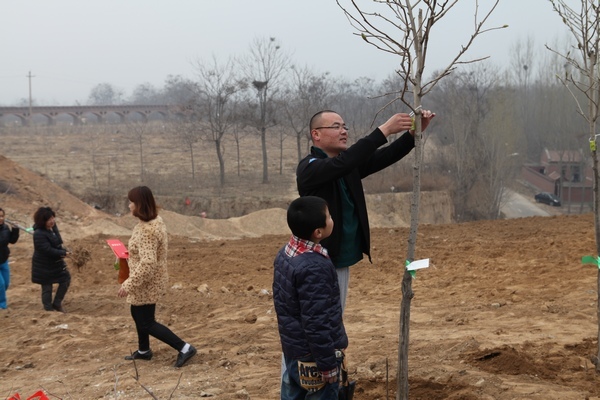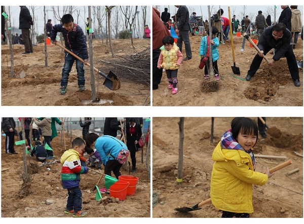 植树活动顺利结束,坡地上竖起了一片小树林,暂时萧索的树干,期待它渐渐接受阳光普照,春雨滋润,生出繁茂枝叶,为大地编织起健康绿色的外衣。不久的将来,小树林也有长成大森林的时候,驱散雾霾,吸引蓝天快快出现在人们的生活之中。