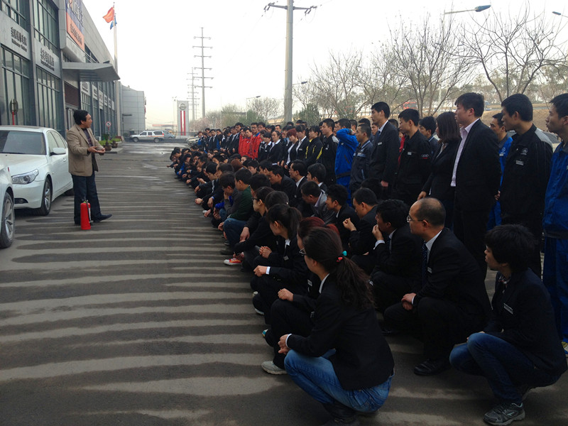 2013年3月19日星期五,河南中鑫之宝汽车销售服务有限公司西安分公司在总经理白永伟、副总经理陈建兵的带领下特邀周琦伟老师在公司内开展了一次消防演练活动,为公司员工普及了有关火灾隐患,消防工具使用及安全逃离火灾现场的知识。