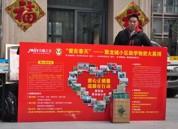 自2012年冬季以来,鑫悦车友俱乐部共举办4次社区募捐活动,2次爱心慰问,1次大型慈善活动。在这短短的几个月时间里,让社会各界感受到中鑫之宝所传递的正能量。在这期间我分别与恩来公益、玖久社工、精诚康复中心、若木书院、黄河慈善等十几家民间慈善机构合作,共同向社会传递爱心。即便如此,我们的力量仍是有限的,中鑫之宝呼吁社会各界共同努力,向弱势群体、贫困人群奉献爱心,传递“正能量”!