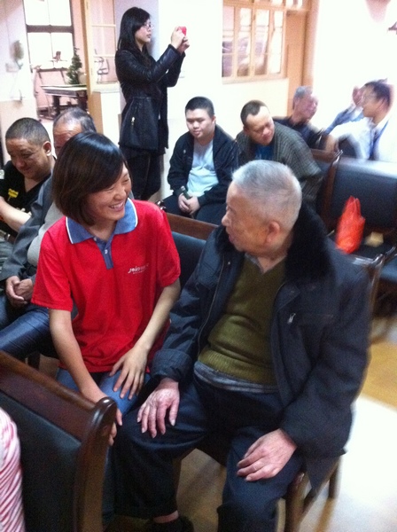 下午3点30分,互动活动准时开始。大家奉上准备已久的节目,而台下的志愿者们,不时的为老人家捶背、削苹果送蛋糕、聊家常。一景一幕深入人心,体贴之意、感动之情无以言表。
