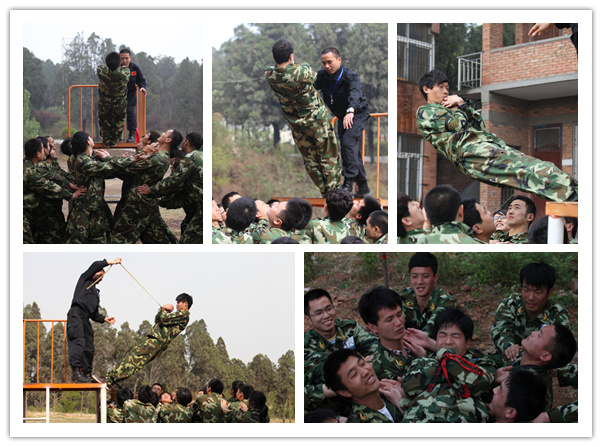 “毕业墙”项目将整个拓展带入了高潮部分,这里没有了组别界限,已经不是一个独立的人,而是由许多个人组成的一个坚不可摧的团队,我们的队员为了团队荣誉,用自己的身体支撑着大家,为大家搭起了人墙和人桥,任由大家的身体从他们的手上、腿上、肩上踩过,他们咬紧牙关,忍受着剧痛坚持着,汗水一滴滴的留到地上,可是他们毫无怨言,因为“团队荣誉至上”!大家从中体会到的不仅仅是团结,是协作,更多的是一种责任和感恩!