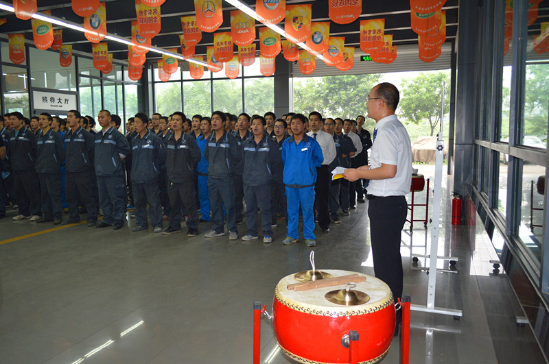 本周第一轮:钣金车间PK奥迪车间 伴随着部门伙伴擂鼓的助威声,团队伙伴们士气高涨,歌声嘹亮,虽无音响播放,但余余回音旋绕耳边的感觉也是让人倾慕的。