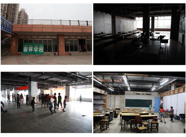春笋小学是一个比较特殊的学校,是专门为进城务工的农民工子女开办的私立学校。学校的汪校长介绍说,春笋小学开办于1995年,因为政策等原因,孩子们到了入学年龄却无法上学,所以才创办了这样一所学校,为得是让孩子们享受到城市里同龄人一样的教学待遇。至今十多年的时间,还处于流动性办公,没有固定的校址,之前学校位于姚寨路的都市村庄因为拆迁,临时搬到了农业路卜蜂莲花二楼,我们所看到的教室,不怎么隔音的隔板是就地取材利用当时商户留下的桌子、柜子拆装而成,除了地板砖是之前装修好的,房顶门窗都十分简陋,老师们的办公室就在外面的大厅,利用旁边落地玻璃的光线照明,而大厅的功能兼具孩子们的操场,下课铃声响起时,孩子们一窝蜂的奔跑出来,在这里嘻哈打闹,课间放松。