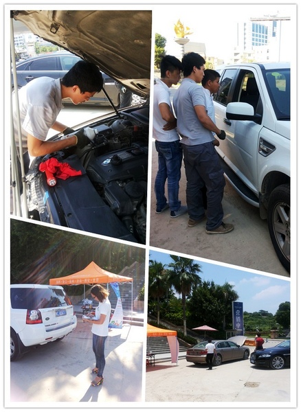 随行的车间师傅负责为客户的爱车做常规检查,并且提供一些简单的保养项目,例如:发动机舱清洗,全车检测、油水添加及刹车盘片的检查。不仅让车主对自己车辆的使用情况有所了解也与客户形成了很好的互动。