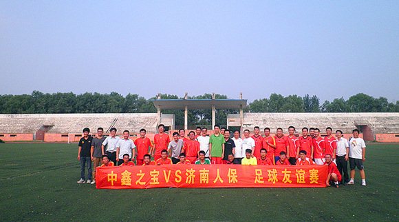 8月10号下午,济南王舍人镇实验中学东苑足球场上,济南人保公司与中鑫之宝济南店的比赛拉开了帷幕。室外温度如火,在足球场上的球员更是汗如雨下,虽是酷暑难当,但却掩饰不了每位球员高涨的热情。