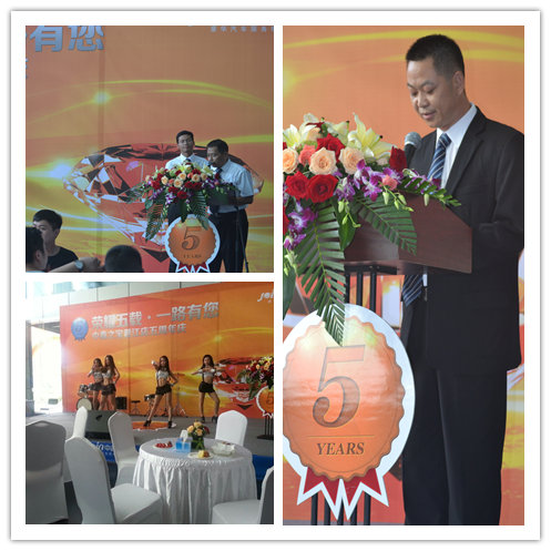 下午14时,一支活力四射的舞蹈为店庆拉开了序幕。首先主持人用充满喜气的讲词介绍了出席本次周年庆典的领导及嘉宾,感谢他们的到场支持。随后,晋江店张总上台为开幕式致辞,张总回顾了中鑫之宝晋江店过去五年的艰苦历程,感谢广大客户在过去五年里对晋江店的不断支持,并表示在未来的日子里我们中鑫会更加努力,把我们的企业做的更好、更大!接着,外籍技术顾问Tino也做了重要的讲话。他向大家分享了自己多年的宝马维修经验,同时对自己在中鑫之宝多年的从业经历做了简要阐述,他向晋江店所有客户证明了,中鑫之宝的技术团队正向国际化迈进!