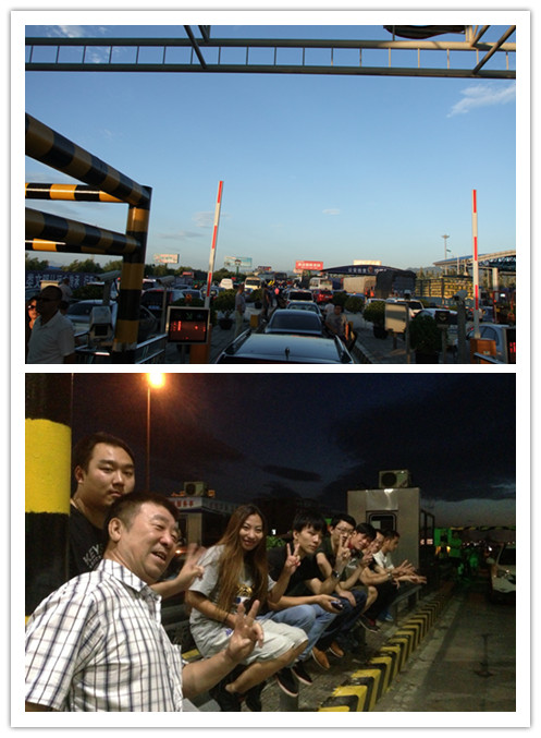 18:00我们的车队抵达花园桥收费站,由于堵车,大家都集体下车拍起了合影,高速路收费站排队拍照,这还是头一次,中鑫汽车人的娱乐精神无处不在。好在50分钟后长长的堵车队伍开始一步步的挪动了,慢慢收费站前面道路疏通了,在晚上9:00左右我们抵达北京姚家园。
