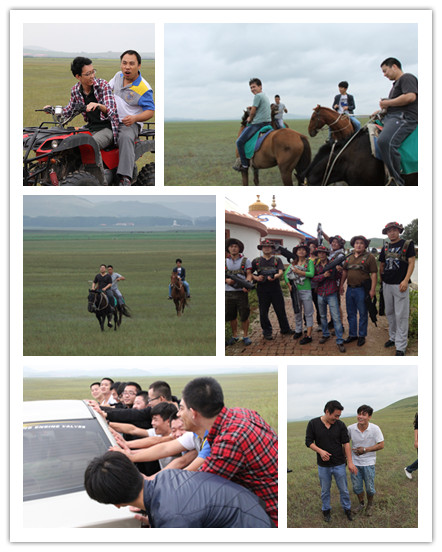 由于八达岭高速大型车较多,造成了交通拥堵,我们接近凌晨才抵达目的地,这离预定时间差了很多。虽然此时大家身体已经比较疲惫,但是当大家见到刚出炉的羊肉串和凉爽的啤酒又开始亢奋起来。第二天清晨伴着淅淅沥沥的雨声,大家开始一天的活动。踏上草原追赶着羊群,或是开着无比拉风的卡丁车越过壕沟感受草原漂移的快感,或是在马背上体验风驰电掣的速度与激情。平时认真严谨的伙伴们都疯狂起来了。即使一个个弄得满身是泥,甚至有的身上“挂彩”还都咧着嘴乐呵呵的笑着。青春就是如此热烈带着些许疼痛和感动!