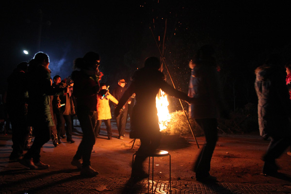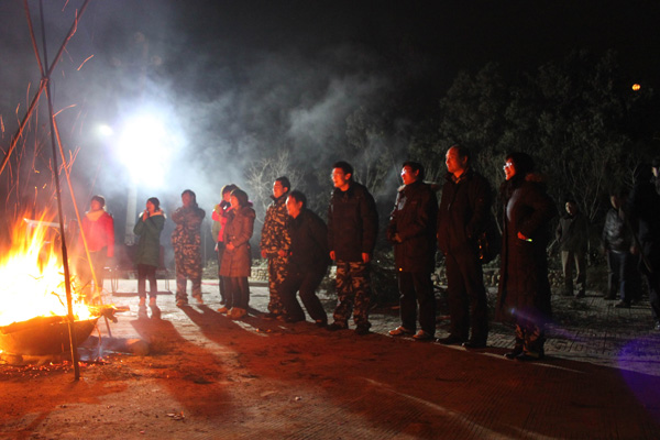 颁奖结束后,点燃了篝火,大家围绕篝火载歌载舞,在夜幕的衬托下,篝火映出了一张张可爱的笑脸,熊熊的火焰喷发出了大家的激情和新一年的无限希望。晚会活动中,赤脚走火的项目让我们尝试并感受困难是如此的不可怕;一碗碗温热的黄酒,激发我们无限的激情。敢拼敢做,一切皆有可能,有酒有火,英雄无畏的气概在火光冲天的旷野上空激荡。
