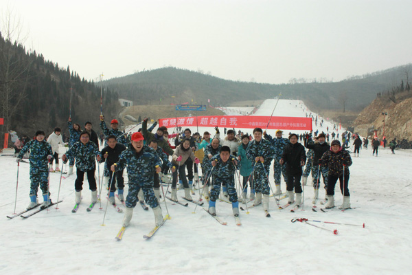 次日上午,团队全体成员赶赴嵩山滑雪场,宽阔的滑雪场地让大家兴奋不已,迫切的投入了雪的怀抱。在这里冰雪的世界里焕发着大家最大的激情,在这充满诱惑和风险的项目中,让大家最大限度的挑战自己的信心,挑战大家的自我心理限度。滑雪场上大家相互搀扶、相互鼓励,在玩乐之中释放未曾激发的激情,在一次次的摔倒之后激励自己尝试新一次挑战。一次次的摔倒,一次又一次的滑行,大家像一个个不会走路的孩子、不会飞翔的小鸟一样,慢慢的居然都能自由的奔跑和滑行,享受着梦想飞翔的喜悦。这次的活动,每个人都投入在激情挑战之中,彻底的放松了心情,舒展了筋骨,玩的也不亦乐乎,激情让我们敢于超越自我!并一定能超越自我!