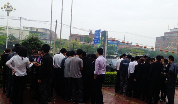 2014年5月8日早上7:30,中鑫之宝晋江店全体员工开展了团队游戏之“齐眉棍”。这是一个挑战团队力量的游戏,16个人为一组,每个人的食指都要接触到棍子,缓慢移动到眉毛的位置,再移到腰间的位置。