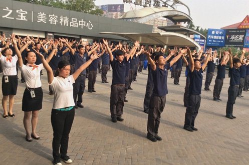 2014年6月9日,早上7:40分花园店的伙伴们就排着整齐的队伍来到了小广场等待新一周的晨会,本周的晨会是由鑫连队举办,共分为5项内容。第一项企业文化宣导,大家喊着整齐响亮的口号,晨会正式开始,鑫连队的美女帅哥们给大家带来了好看的舞蹈。