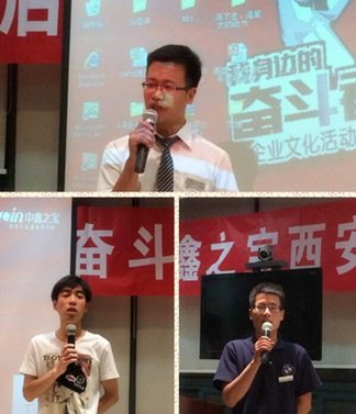 在中鑫之宝这个大家庭中,奋斗者非常多,借着这样的文化氛围,2014年6月25日,中鑫之宝西安店举行了第一届“我身边的奋斗者”演讲比赛初赛,参赛选手总计18名,每位选手都讲出了关于自己身边奋斗者的不同事迹,最终10名人员晋级,于2014年6月26日举行决赛。