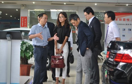 9点10分,水野泰秀等人在广本北环店总经理王波的陪同下抵达我司,随后参观了我司的销售展厅、保险接待办理厅、售后维修车间、销售部等部门。