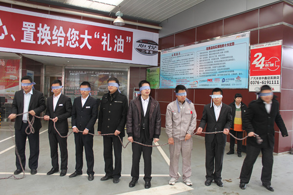 3月12日,中鑫之宝西安和信阳广丰店两大店面在不同的地方、举办着不同的活动,但都是为了同一个目的:庆祝公司十五周年,丰富员工文化生活。西安店的活动选择在了清晨,应该寓意着一天之计在于晨吧,也可能寓意着激情从清晨开始吧!——富有激情是中鑫汽车的一贯风格。信阳是外地店面中举办活动项目难度最大的店面:拔河、无敌风火轮、台球晋级赛、心心相印、盲人方阵……
