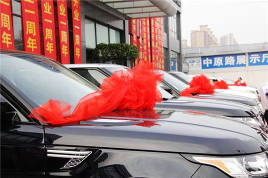 百辆豪华美规车身披大红花,犹如一位位即将要出嫁的新娘只等她的意中人来迎娶。