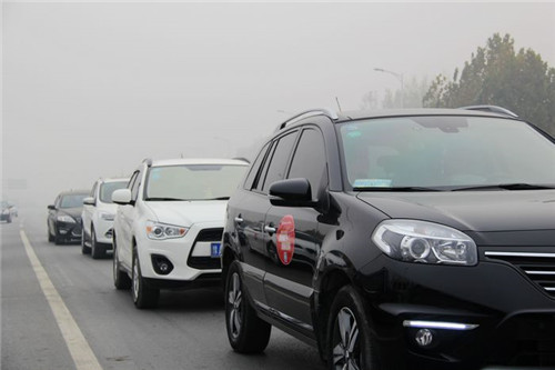 22日早晨虽然大雾弥漫,但客户还是如约赶到集合地点,他们有的带上了自己的父母孩儿,有的邀上了两三挚友共同参与活动,中鑫之宝为大家准备了营养的早餐,客户一边用餐,一边听工作人员讲活动注意事项,吃饱喝足后,车队出发了!领头车辆队旗迎风招展,三十多辆豪车排成一排,煞是壮观!