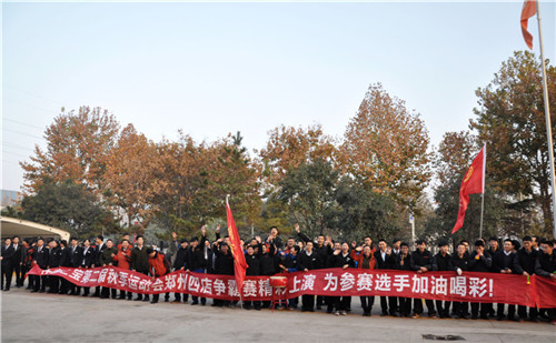 来自圃田店、中博店、花园店的近百位选手和啦啦队分别从郑州东、南、北赶赴赛场。